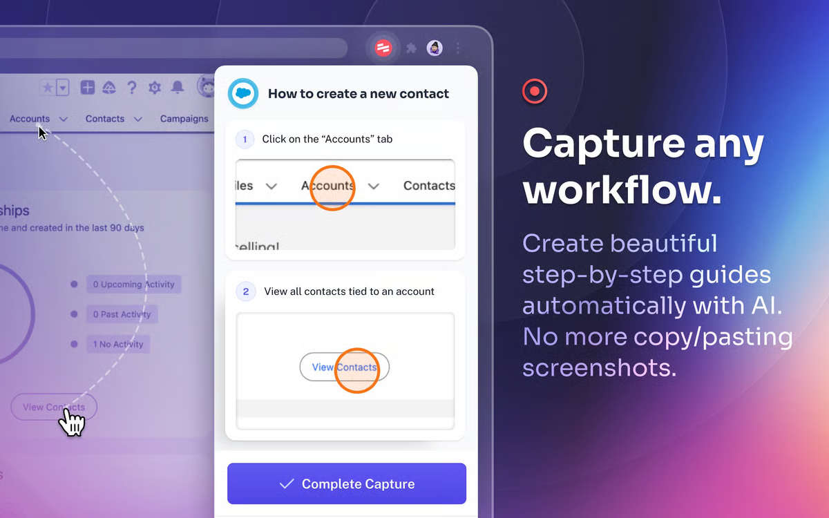 - One-Click Recording: Extension/app follows your actions, grabs screenshots, adds instructions. Pro tip: Pause for sensitive spots, auto-redacts on paid plans.