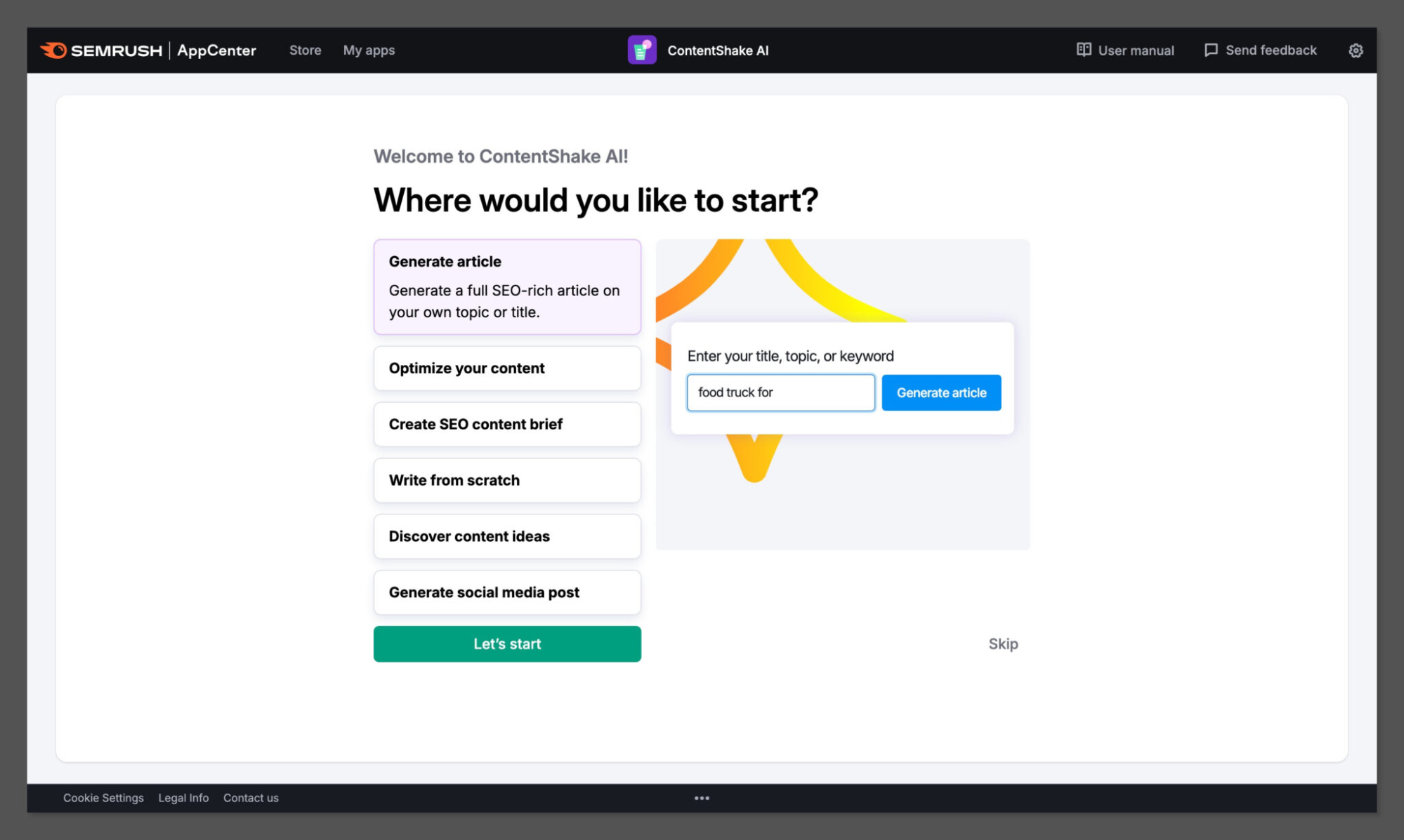 Try ContentShake here: https://www.semrush.com/contentshake/