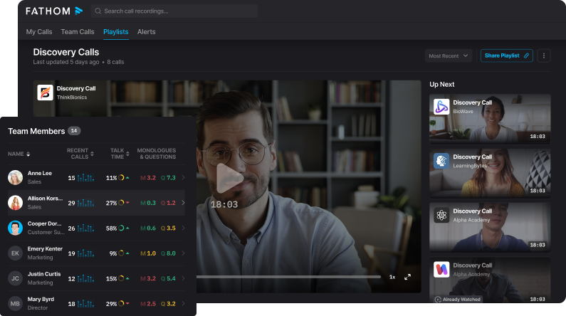 - Ask Fathom and Insights: Got a nagging question like “What was said about the Q4 timeline?” Hit the chat, get an instant pull-quote. Team plans amp it up with cross-meeting searches, keyword alerts (e.g., flag every “budget” mention), and even sales coaching nudges, like a gentle buzz if you’re monologuing too long.